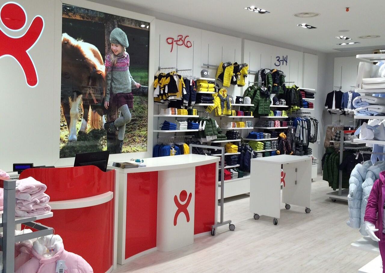 Catena di negozi per abbigliamento da bambino da 0 a 14 anni. Una rete distributiva che vanta più di 180 punti vendita in Italia e 40 all’estero. Per l’allestimento sono stati scelti i colori bianco e rosso. Il rivestimento degli espositori è in laminato e le parti sagomate sono state realizzate in laccato bianco.